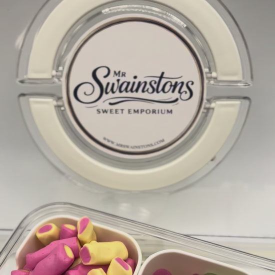 Snack time just got sweeter with Mr. Swainston’s Sweet Snack Box — the ultimate pick-and-mix experience in one handy box! 😍 This generous 8-compartment box is filled with your favourite choices from our pick and mix range, giving you a custom selection of sweets to suit every craving.